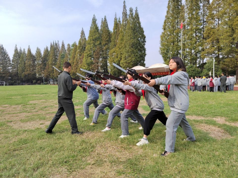 刺杀操 在共建单位驻宁武警某部的大力支持下,营防中学开设刺杀操训练。尊严只在剑锋之上,捍卫和平,需要平时认真刻苦的训练。